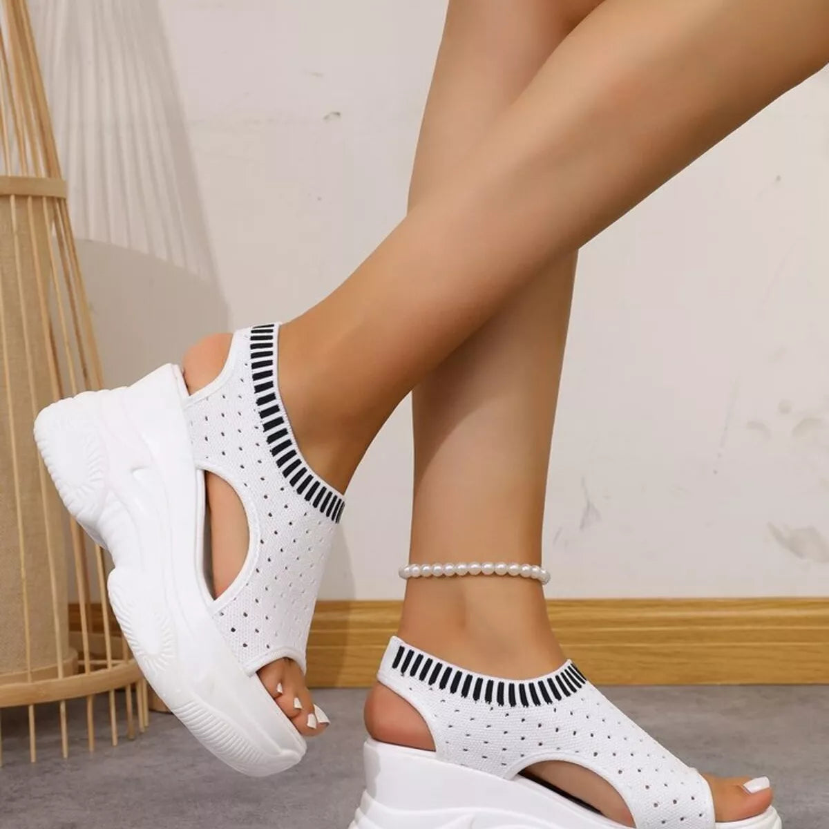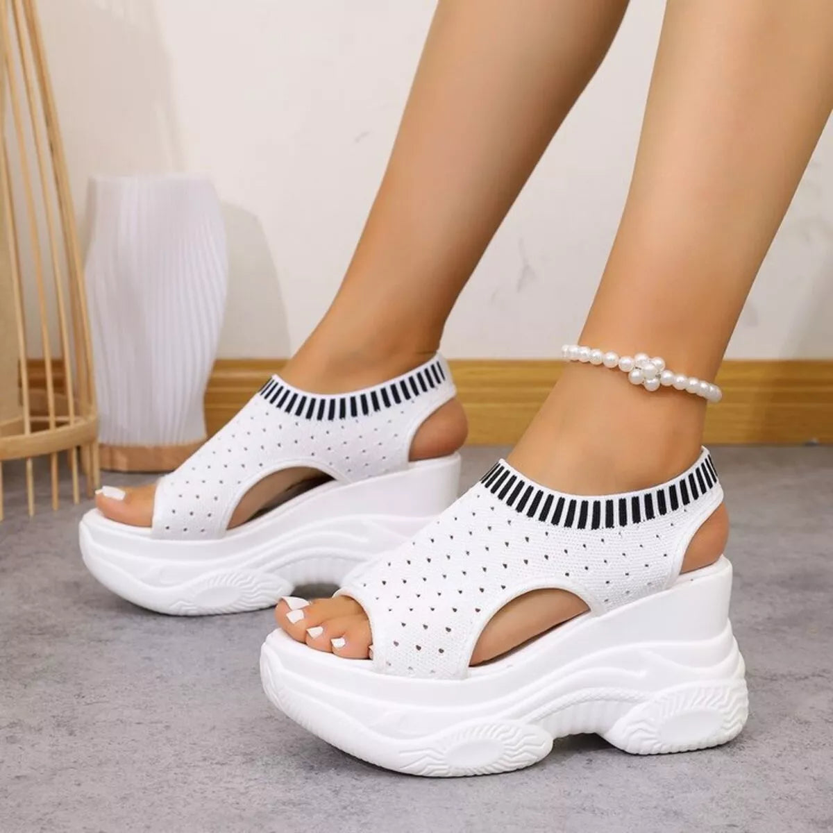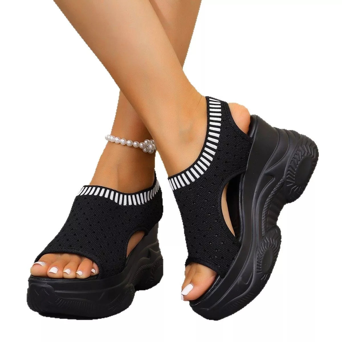 Eenvoudige Effen Kleur Casual Sandalen met Platformzool en Sleehak van Mesh