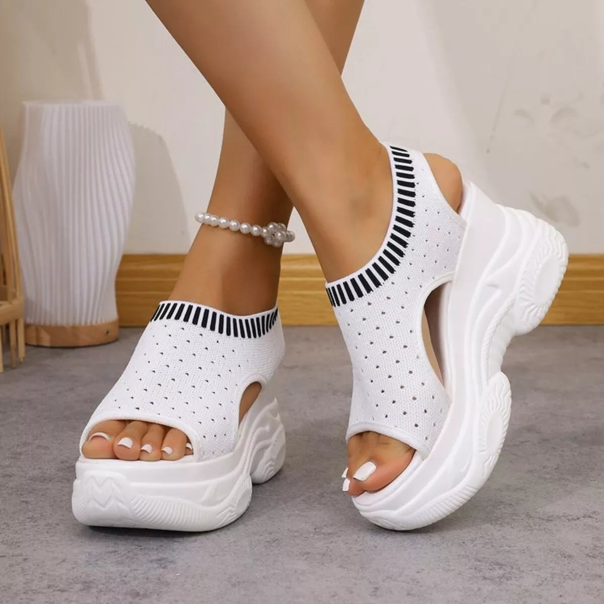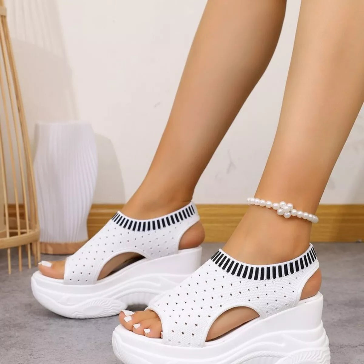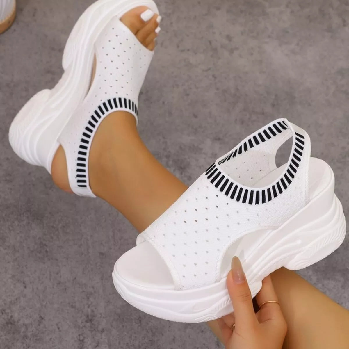 Eenvoudige Effen Kleur Casual Sandalen met Platformzool en Sleehak van Mesh